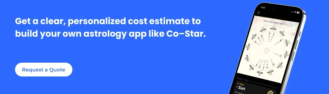 A basic astrology app, say Co-Star, is all about complex astrological calculations and a whole lot of data. Developing or acquiring the right kind of data and complex astrological calculations increases the cost of developing an astrology app like Co-Star for the business as well.